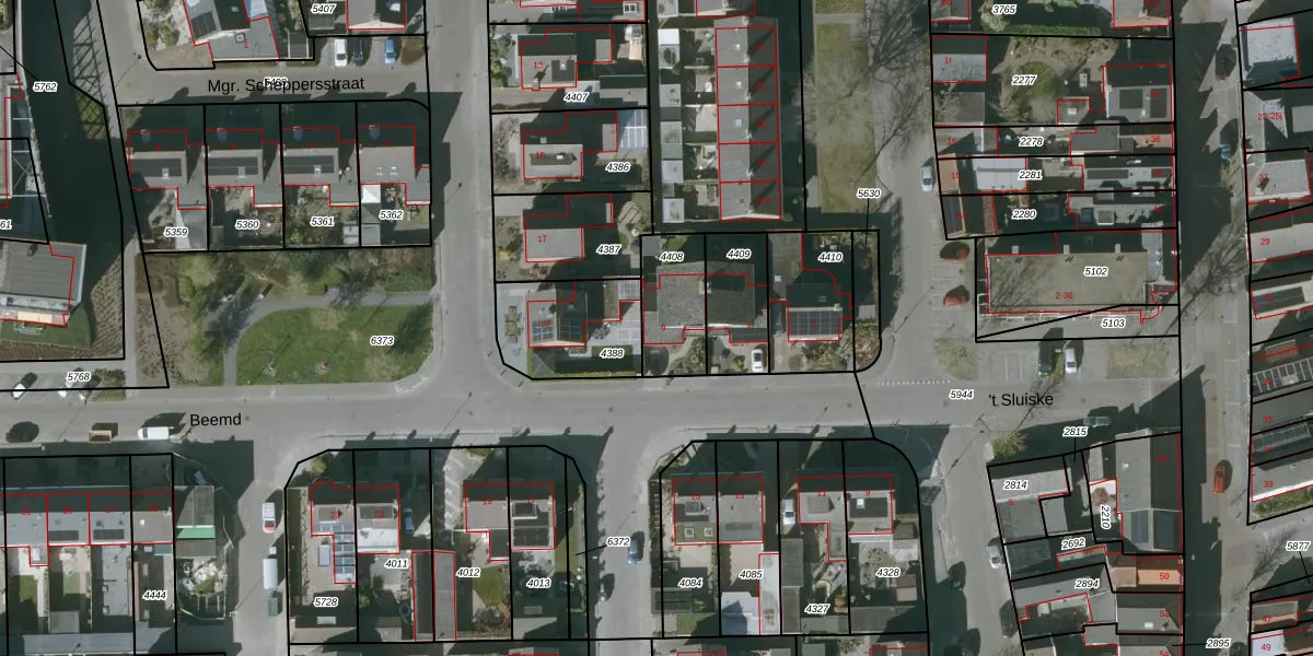 Gebruik de zoekbalk of klik op een perceel voor informatie over de adressen binnen dit perceel.
