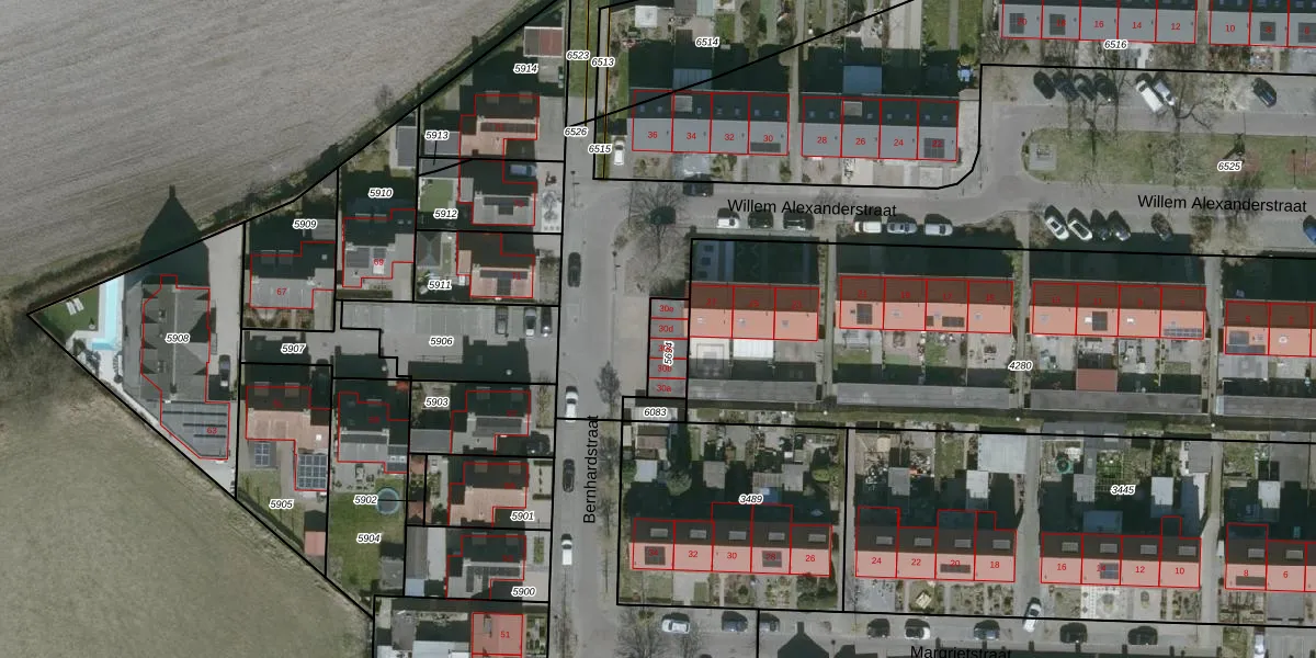 Het perceel waarop Bernhardstraat 30-d staat heeft een oppervlakte van 90 m². Dit is een klein perceel. De perceeloppervlakte wordt geregistreerd door het Kadaster. Gedetailleerde informatie over de maten van dit perceel kunt u vinden in het rapport Kadastrale kaart met maatvoering van Bernhardstraat 30-d.
