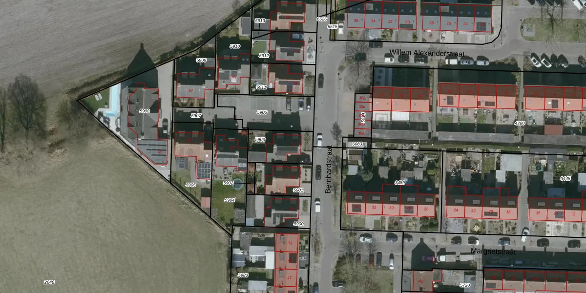 Gebruik de zoekbalk of klik op een perceel voor informatie over de adressen binnen dit perceel.