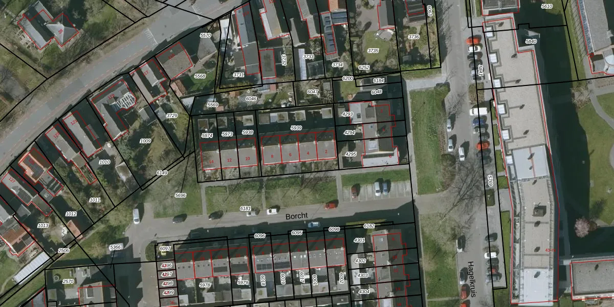 Het perceel waarop Borcht 4 staat heeft een oppervlakte van 557 m². Dit is een groot perceel. De perceeloppervlakte wordt geregistreerd door het Kadaster. Gedetailleerde informatie over de maten van dit perceel kunt u vinden in het rapport Kadastrale kaart met maatvoering van Borcht 4.