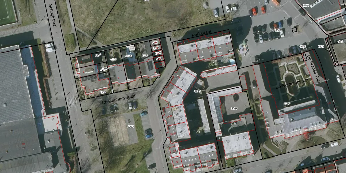 Cheltenhamstraat 10 is gelegen op kadastraal perceel GTL02D5198. Deze kadastrale aanduiding is uniek en wordt gebruikt door het Kadaster om eigendomsrechten en andere zakelijke rechten vast te leggen. Het perceel maakt onderdeel uit van de kadastrale gemeente Oud en Nieuw Gastel.