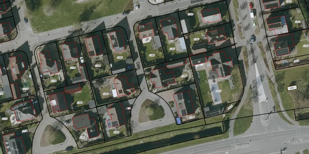 Het perceel waarop Dille 1 staat heeft een oppervlakte van 537 m². Dit is een groot perceel. De perceeloppervlakte wordt geregistreerd door het Kadaster. Gedetailleerde informatie over de maten van dit perceel kunt u vinden in het rapport Kadastrale kaart met maatvoering van Dille 1.