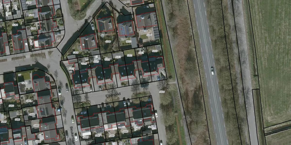 Het perceel waarop Elzenpad 13 staat heeft een oppervlakte van 199 m². Dit is een middelgroot perceel. De perceeloppervlakte wordt geregistreerd door het Kadaster. Gedetailleerde informatie over de maten van dit perceel kunt u vinden in het rapport Kadastrale kaart met maatvoering van Elzenpad 13.