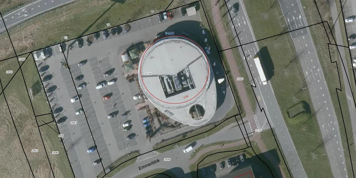 Het perceel waarop Emmerblok 2-a staat heeft een oppervlakte van 5925 m². Dit is een zeer groot perceel. De perceeloppervlakte wordt geregistreerd door het Kadaster. Gedetailleerde informatie over de maten van dit perceel kunt u vinden in het rapport Kadastrale kaart met maatvoering van Emmerblok 2-a.