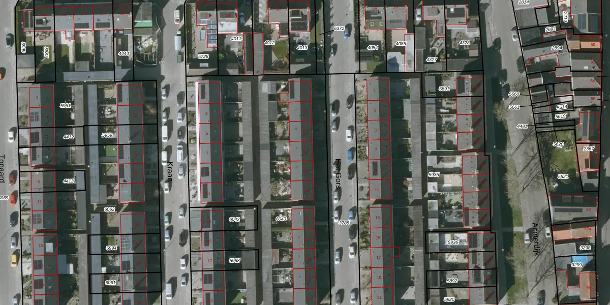 Het perceel waarop Het Gors 8 staat heeft een oppervlakte van 4250 m². Dit is een zeer groot perceel. De perceeloppervlakte wordt geregistreerd door het Kadaster. Gedetailleerde informatie over de maten van dit perceel kunt u vinden in het rapport Kadastrale kaart met maatvoering van Het Gors 8.