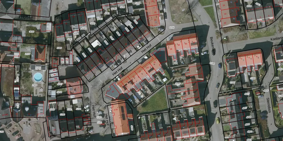 Het Hof 28 is gelegen op kadastraal perceel GTL02D5095. Deze kadastrale aanduiding is uniek en wordt gebruikt door het Kadaster om eigendomsrechten en andere zakelijke rechten vast te leggen. Het perceel maakt onderdeel uit van de kadastrale gemeente Oud en Nieuw Gastel.