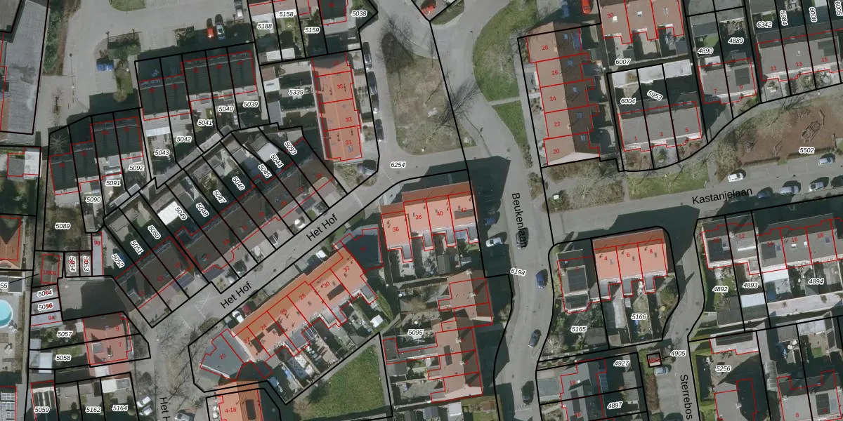 Het Hof 38 is gelegen op kadastraal perceel GTL02D5095. Deze kadastrale aanduiding is uniek en wordt gebruikt door het Kadaster om eigendomsrechten en andere zakelijke rechten vast te leggen. Het perceel maakt onderdeel uit van de kadastrale gemeente Oud en Nieuw Gastel.