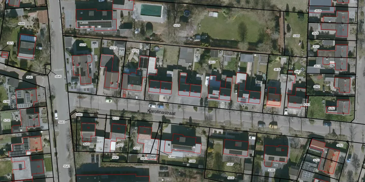 Karolinastraat 42 is gelegen op kadastraal perceel GTL02D3612. Deze kadastrale aanduiding is uniek en wordt gebruikt door het Kadaster om eigendomsrechten en andere zakelijke rechten vast te leggen. Het perceel maakt onderdeel uit van de kadastrale gemeente Oud en Nieuw Gastel.
