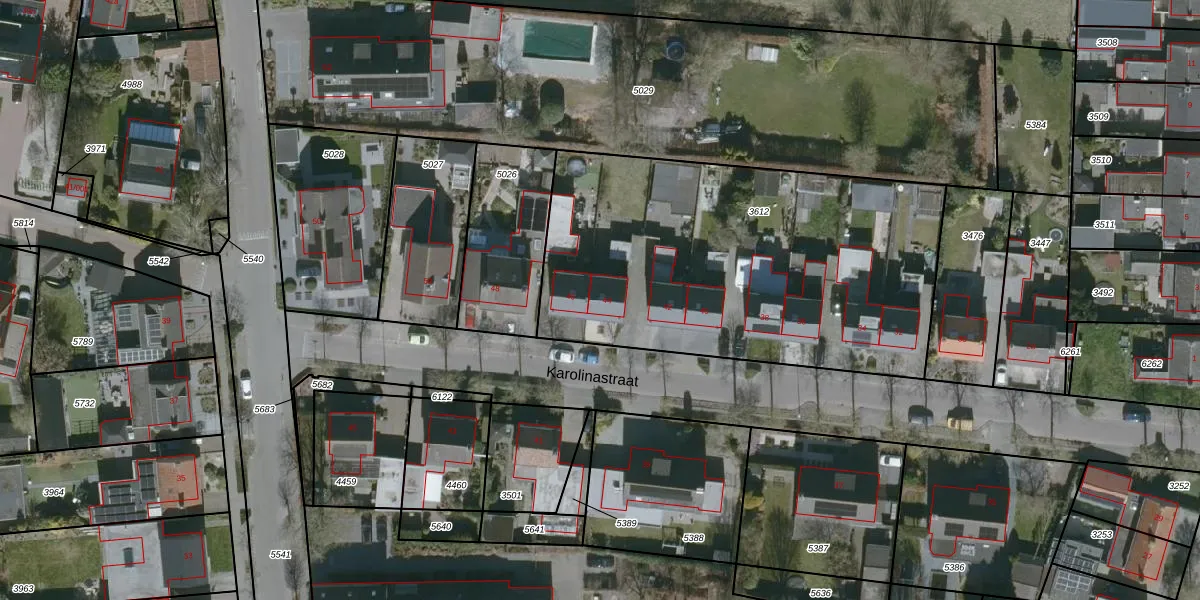 Het perceel waarop Karolinastraat 44 staat heeft een oppervlakte van 2105 m². Dit is een zeer groot perceel. De perceeloppervlakte wordt geregistreerd door het Kadaster. Gedetailleerde informatie over de maten van dit perceel kunt u vinden in het rapport Kadastrale kaart met maatvoering van Karolinastraat 44.