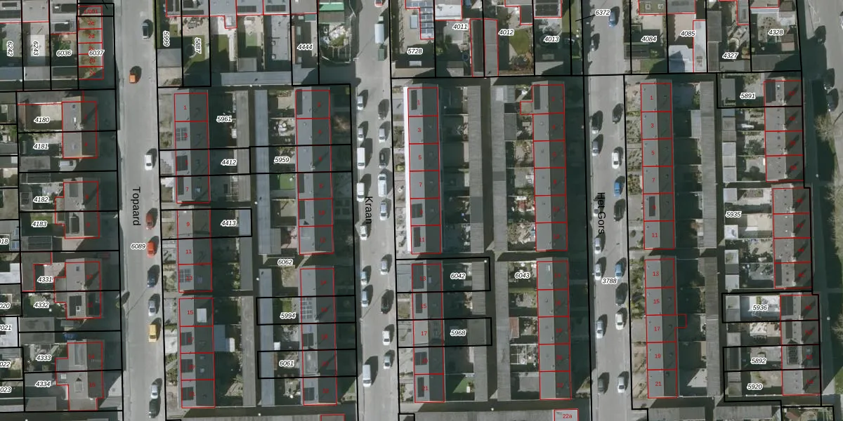 Het perceel waarop Kraan 9 staat heeft een oppervlakte van 4250 m². Dit is een zeer groot perceel. De perceeloppervlakte wordt geregistreerd door het Kadaster. Gedetailleerde informatie over de maten van dit perceel kunt u vinden in het rapport Kadastrale kaart met maatvoering van Kraan 9.
