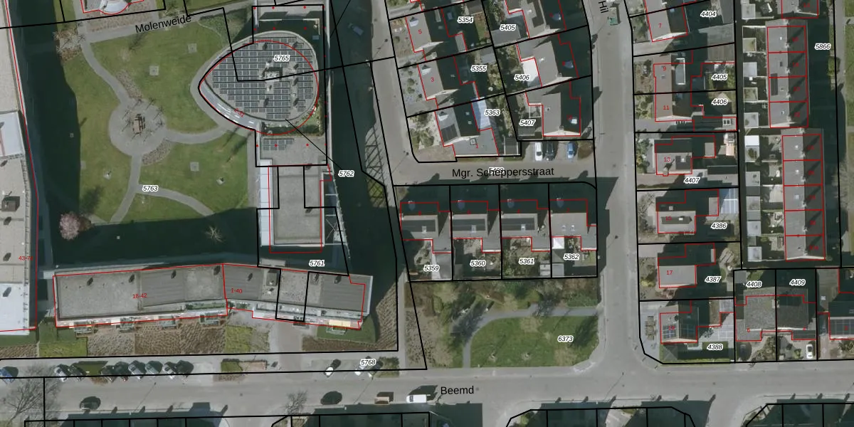 Het perceel waarop Mgr. Scheppersstraat 8 staat heeft een oppervlakte van 262 m². Dit is een middelgroot perceel. De perceeloppervlakte wordt geregistreerd door het Kadaster. Gedetailleerde informatie over de maten van dit perceel kunt u vinden in het rapport Kadastrale kaart met maatvoering van Mgr. Scheppersstraat 8.