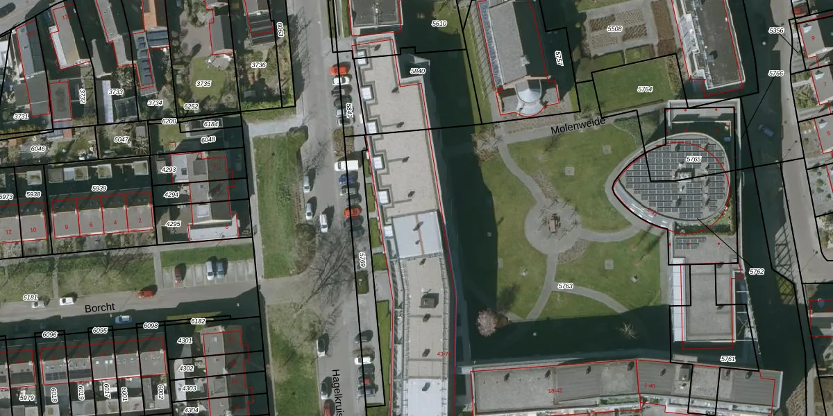 Het perceel waarop Molenweide 47 staat heeft een oppervlakte van 6590 m². Dit is een zeer groot perceel. De perceeloppervlakte wordt geregistreerd door het Kadaster. Gedetailleerde informatie over de maten van dit perceel kunt u vinden in het rapport Kadastrale kaart met maatvoering van Molenweide 47.