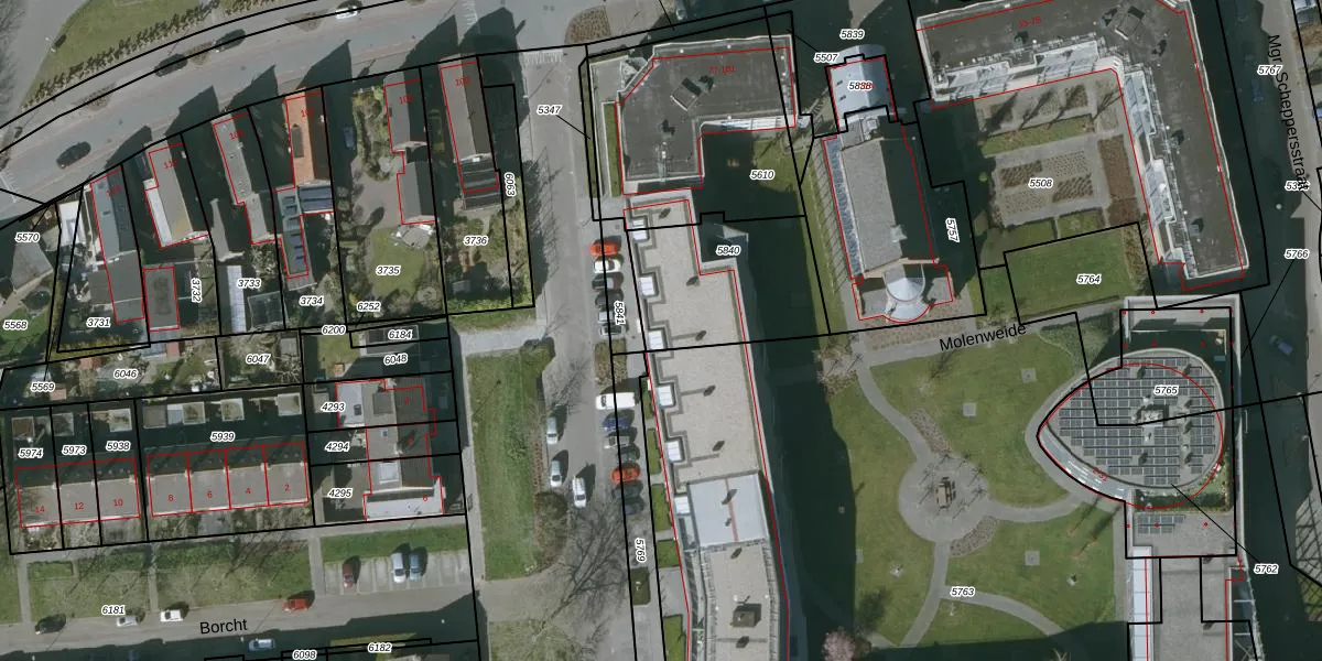 Het perceel waarop Molenweide 56 staat heeft een oppervlakte van 514 m². Dit is een groot perceel. De perceeloppervlakte wordt geregistreerd door het Kadaster. Gedetailleerde informatie over de maten van dit perceel kunt u vinden in het rapport Kadastrale kaart met maatvoering van Molenweide 56.