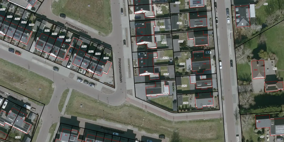 Prinsessenlaan 32 is gelegen op kadastraal perceel GTL02G2575. Deze kadastrale aanduiding is uniek en wordt gebruikt door het Kadaster om eigendomsrechten en andere zakelijke rechten vast te leggen. Het perceel maakt onderdeel uit van de kadastrale gemeente Oud en Nieuw Gastel.