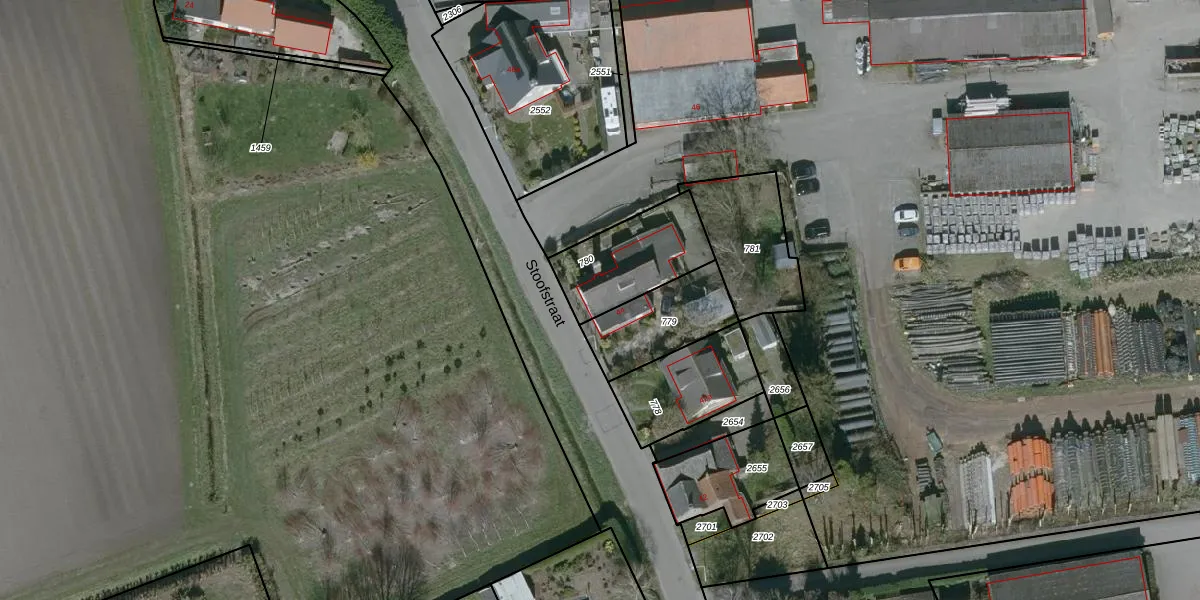 Stoofstraat 44 is gelegen op kadastraal perceel GTL02G780. Deze kadastrale aanduiding is uniek en wordt gebruikt door het Kadaster om eigendomsrechten en andere zakelijke rechten vast te leggen. Het perceel maakt onderdeel uit van de kadastrale gemeente Oud en Nieuw Gastel.