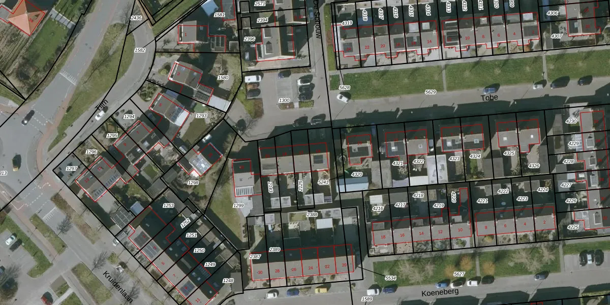 Gebruik de zoekbalk of klik op een perceel voor informatie over de adressen binnen dit perceel.