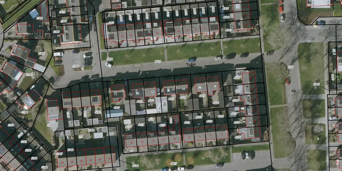 Het perceel waarop Tobe 7 staat heeft een oppervlakte van 194 m². Dit is een middelgroot perceel. De perceeloppervlakte wordt geregistreerd door het Kadaster. Gedetailleerde informatie over de maten van dit perceel kunt u vinden in het rapport Kadastrale kaart met maatvoering van Tobe 7.