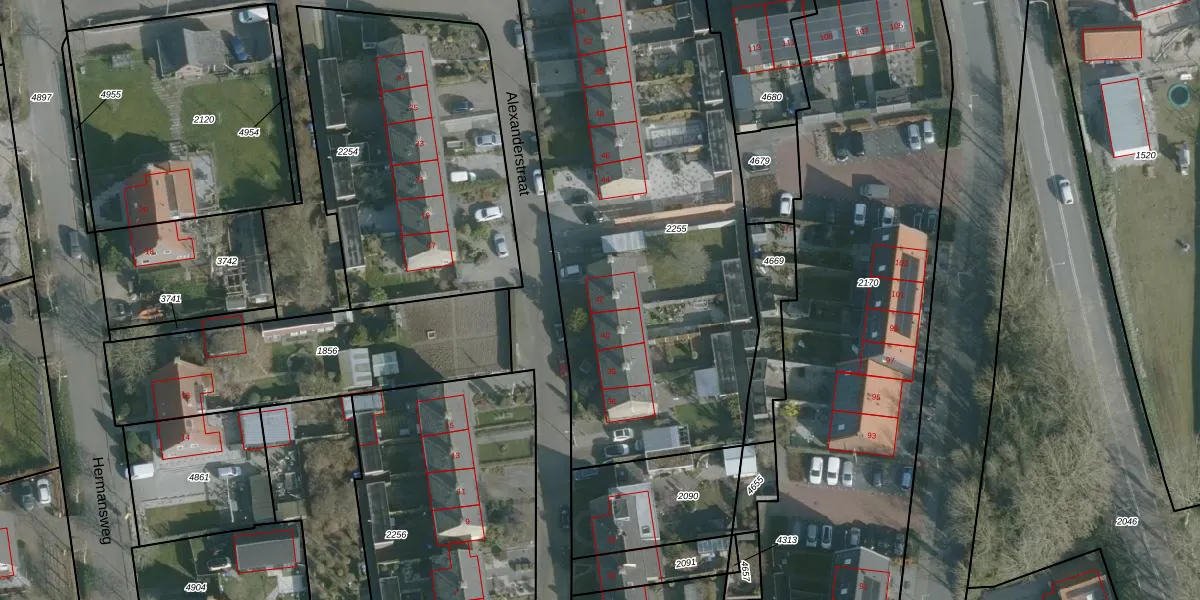 Alexanderstraat 42 is gelegen op kadastraal perceel ODP01B2255. Deze kadastrale aanduiding is uniek en wordt gebruikt door het Kadaster om eigendomsrechten en andere zakelijke rechten vast te leggen. Het perceel maakt onderdeel uit van de kadastrale gemeente Ouddorp.