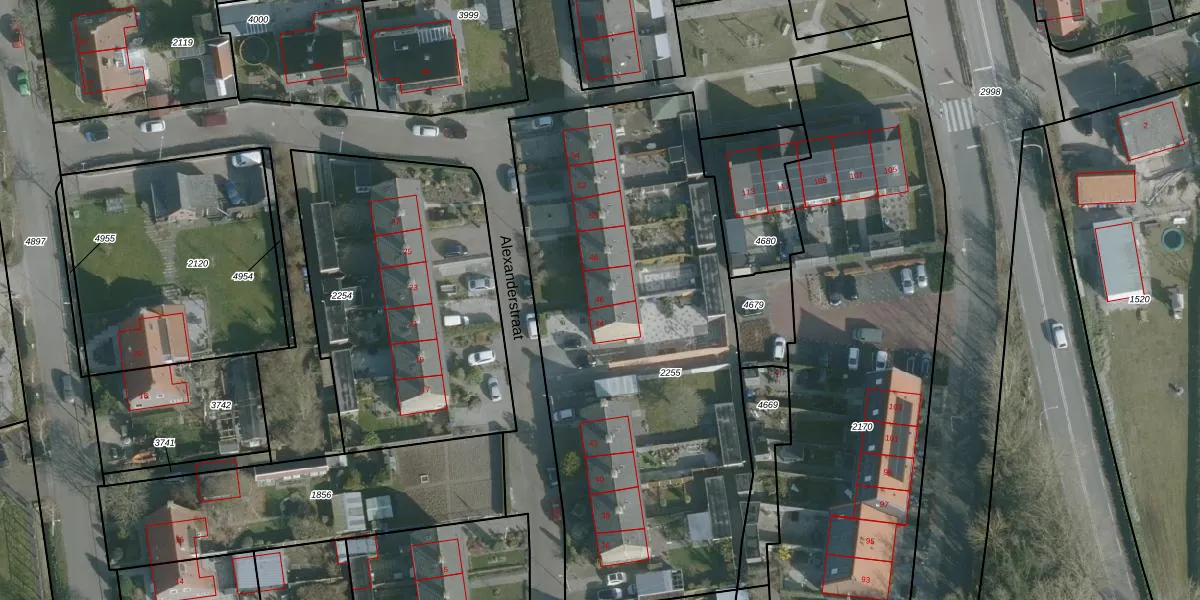 Alexanderstraat 46 is gelegen op kadastraal perceel ODP01B2255. Deze kadastrale aanduiding is uniek en wordt gebruikt door het Kadaster om eigendomsrechten en andere zakelijke rechten vast te leggen. Het perceel maakt onderdeel uit van de kadastrale gemeente Ouddorp.