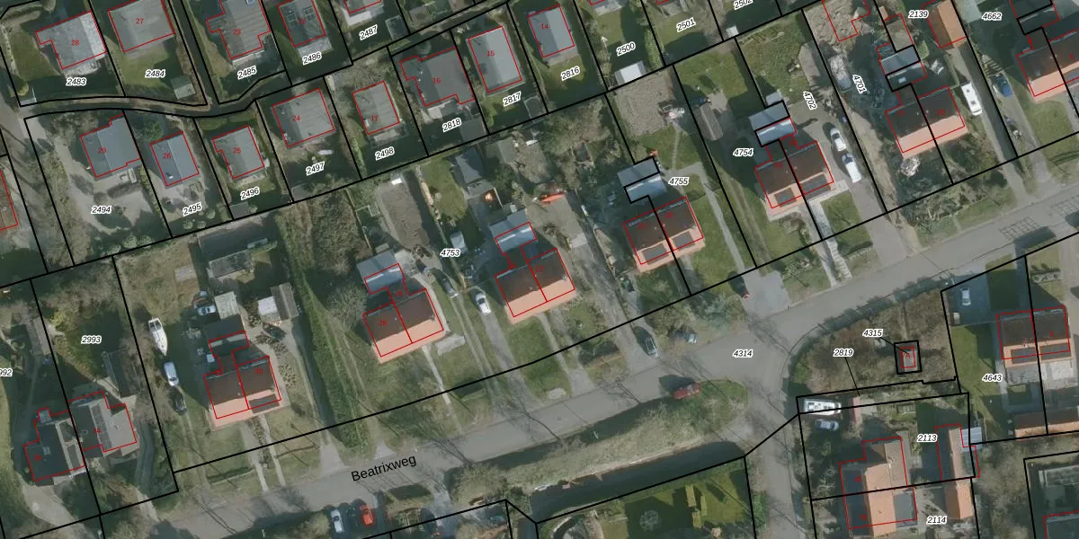 Beatrixweg 22 is gelegen op kadastraal perceel ODP01B4753. Deze kadastrale aanduiding is uniek en wordt gebruikt door het Kadaster om eigendomsrechten en andere zakelijke rechten vast te leggen. Het perceel maakt onderdeel uit van de kadastrale gemeente Ouddorp.