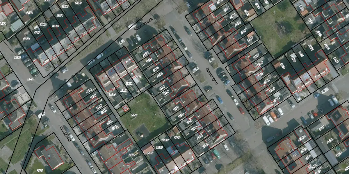 Bieningen 12 is gelegen op kadastraal perceel ODP01D2376. Deze kadastrale aanduiding is uniek en wordt gebruikt door het Kadaster om eigendomsrechten en andere zakelijke rechten vast te leggen. Het perceel maakt onderdeel uit van de kadastrale gemeente Ouddorp.
