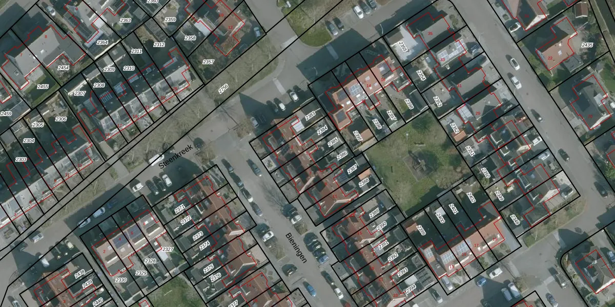 Gebruik de zoekbalk of klik op een perceel voor informatie over de adressen binnen dit perceel.