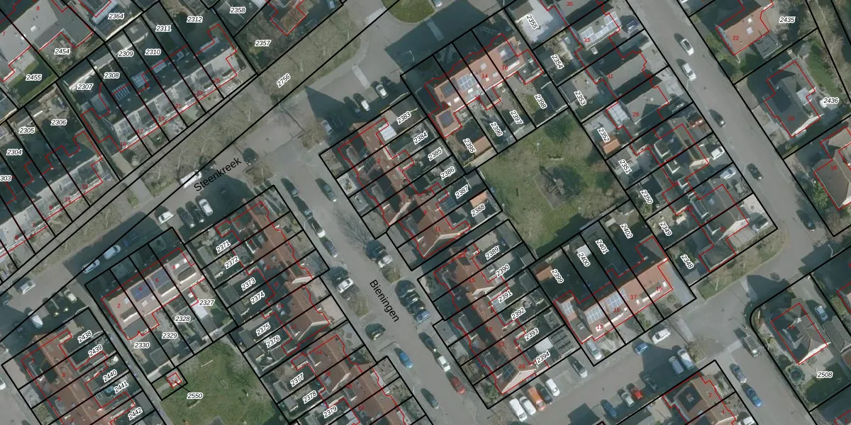 Bieningen 9 is gelegen op kadastraal perceel ODP01D2387. Deze kadastrale aanduiding is uniek en wordt gebruikt door het Kadaster om eigendomsrechten en andere zakelijke rechten vast te leggen. Het perceel maakt onderdeel uit van de kadastrale gemeente Ouddorp.