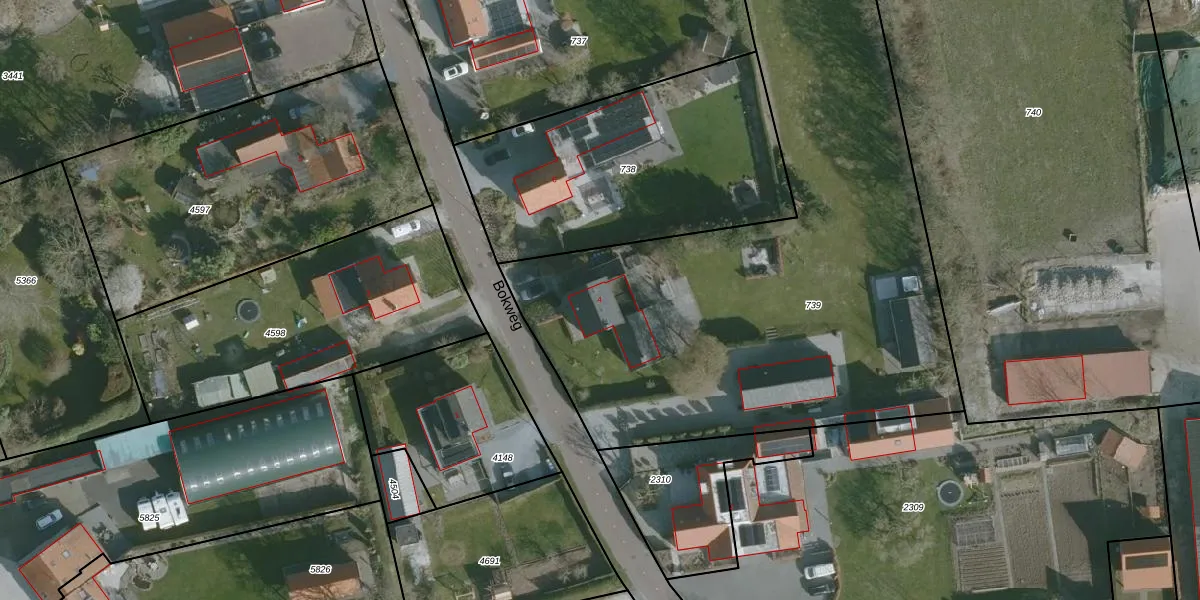 Het perceel waarop Bokweg 4 staat heeft een oppervlakte van 3460 m². Dit is een zeer groot perceel. De perceeloppervlakte wordt geregistreerd door het Kadaster. Gedetailleerde informatie over de maten van dit perceel kunt u vinden in het rapport Kadastrale kaart met maatvoering van Bokweg 4.