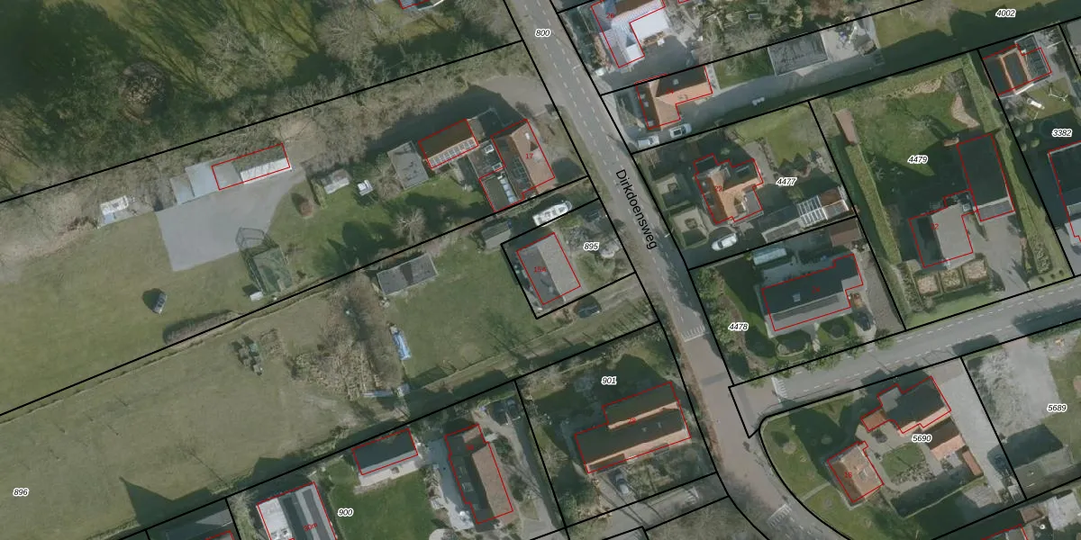 Dirkdoensweg 15-A is gelegen op kadastraal perceel ODP01H895. Deze kadastrale aanduiding is uniek en wordt gebruikt door het Kadaster om eigendomsrechten en andere zakelijke rechten vast te leggen. Het perceel maakt onderdeel uit van de kadastrale gemeente Ouddorp.