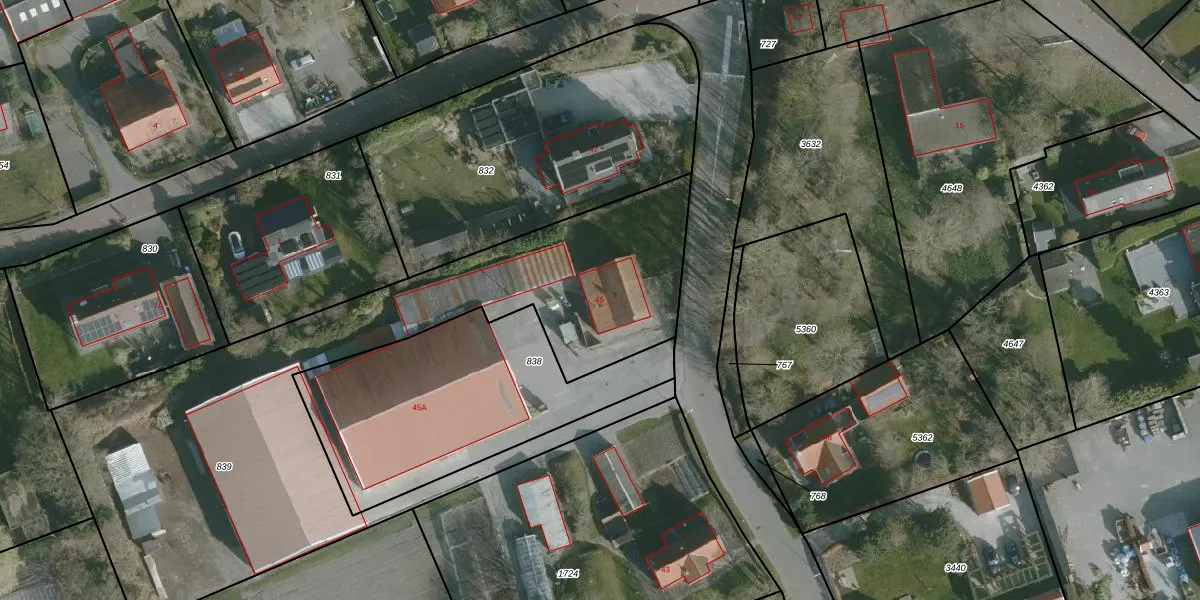 Het perceel waarop Dirkdoensweg 45 staat heeft een oppervlakte van 2740 m². Dit is een zeer groot perceel. De perceeloppervlakte wordt geregistreerd door het Kadaster. Gedetailleerde informatie over de maten van dit perceel kunt u vinden in het rapport Kadastrale kaart met maatvoering van Dirkdoensweg 45.