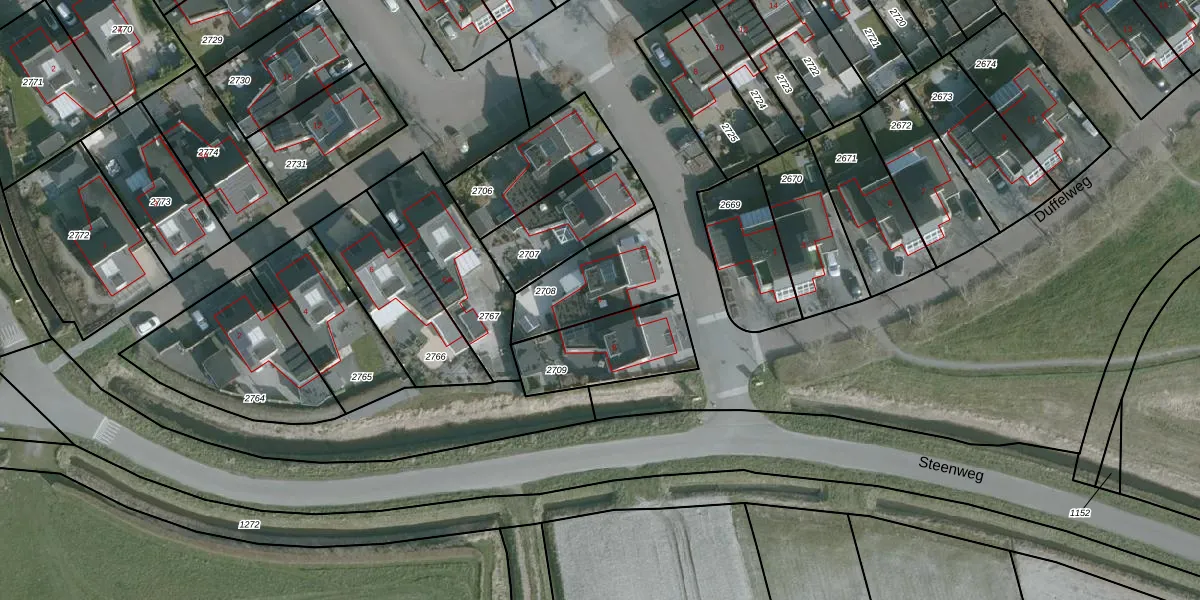 Duffelweg 6 is gelegen op kadastraal perceel ODP01D2708. Deze kadastrale aanduiding is uniek en wordt gebruikt door het Kadaster om eigendomsrechten en andere zakelijke rechten vast te leggen. Het perceel maakt onderdeel uit van de kadastrale gemeente Ouddorp.