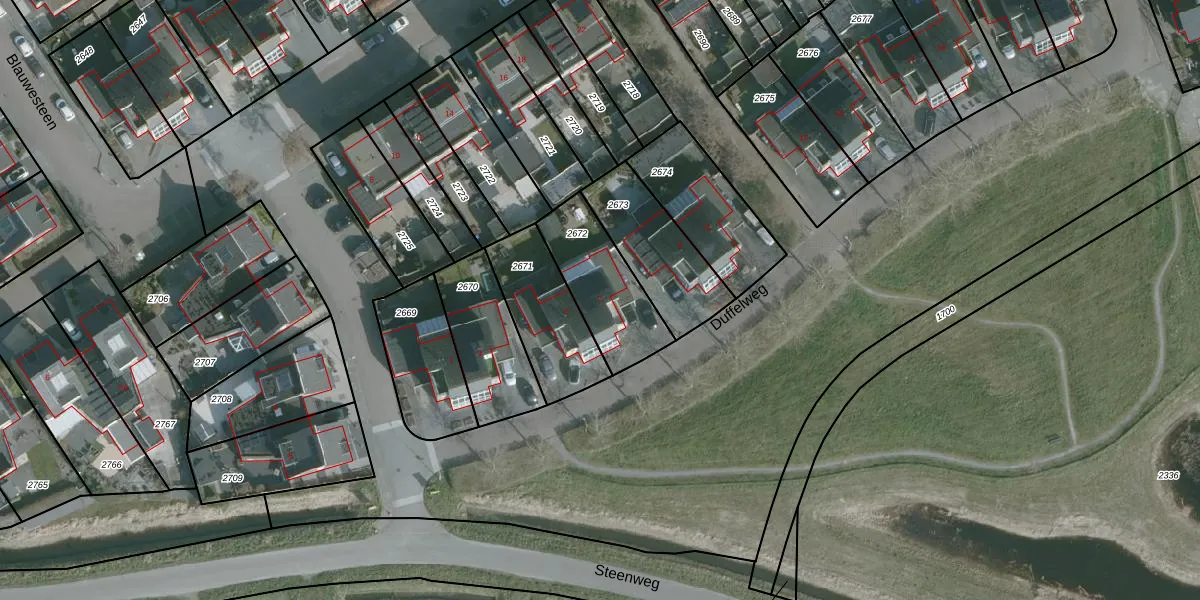 Duffelweg 7 is gelegen op kadastraal perceel ODP01D2672. Deze kadastrale aanduiding is uniek en wordt gebruikt door het Kadaster om eigendomsrechten en andere zakelijke rechten vast te leggen. Het perceel maakt onderdeel uit van de kadastrale gemeente Ouddorp.