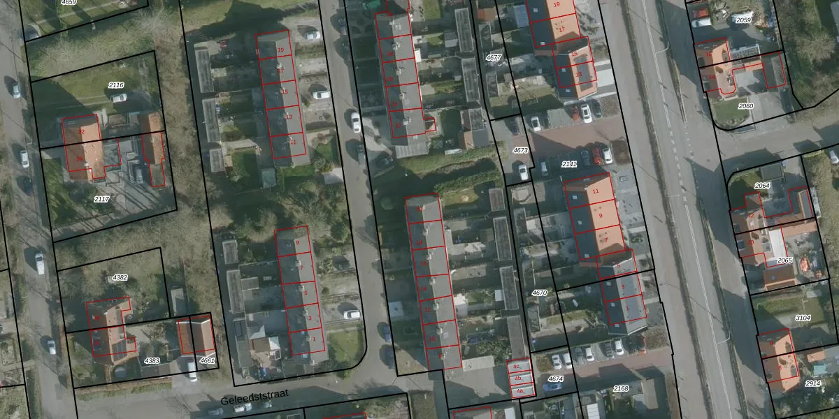 Het perceel waarop Geleedststraat 20 staat heeft een oppervlakte van 5855 m². Dit is een zeer groot perceel. De perceeloppervlakte wordt geregistreerd door het Kadaster. Gedetailleerde informatie over de maten van dit perceel kunt u vinden in het rapport Kadastrale kaart met maatvoering van Geleedststraat 20.