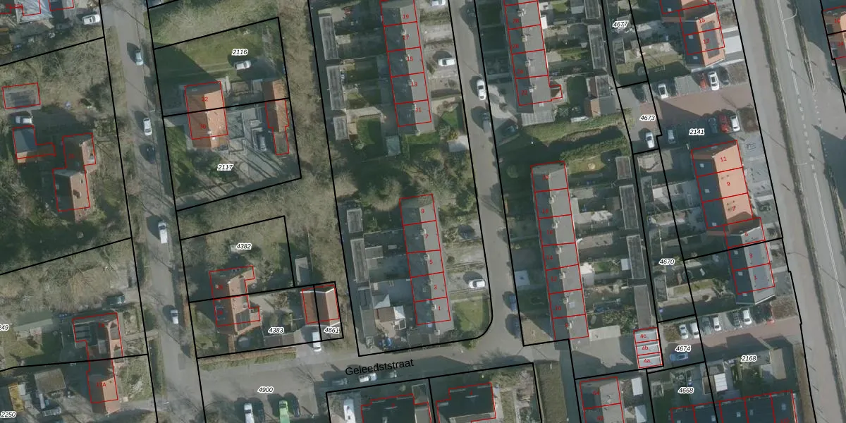Het perceel waarop Geleedststraat 9 staat heeft een oppervlakte van 4295 m². Dit is een zeer groot perceel. De perceeloppervlakte wordt geregistreerd door het Kadaster. Gedetailleerde informatie over de maten van dit perceel kunt u vinden in het rapport Kadastrale kaart met maatvoering van Geleedststraat 9.
