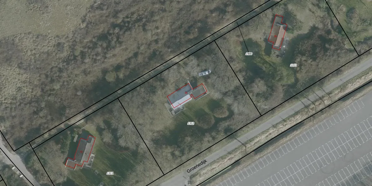 Groenedijk 30 is gelegen op kadastraal perceel ODP01A1312. Deze kadastrale aanduiding is uniek en wordt gebruikt door het Kadaster om eigendomsrechten en andere zakelijke rechten vast te leggen. Het perceel maakt onderdeel uit van de kadastrale gemeente Ouddorp.