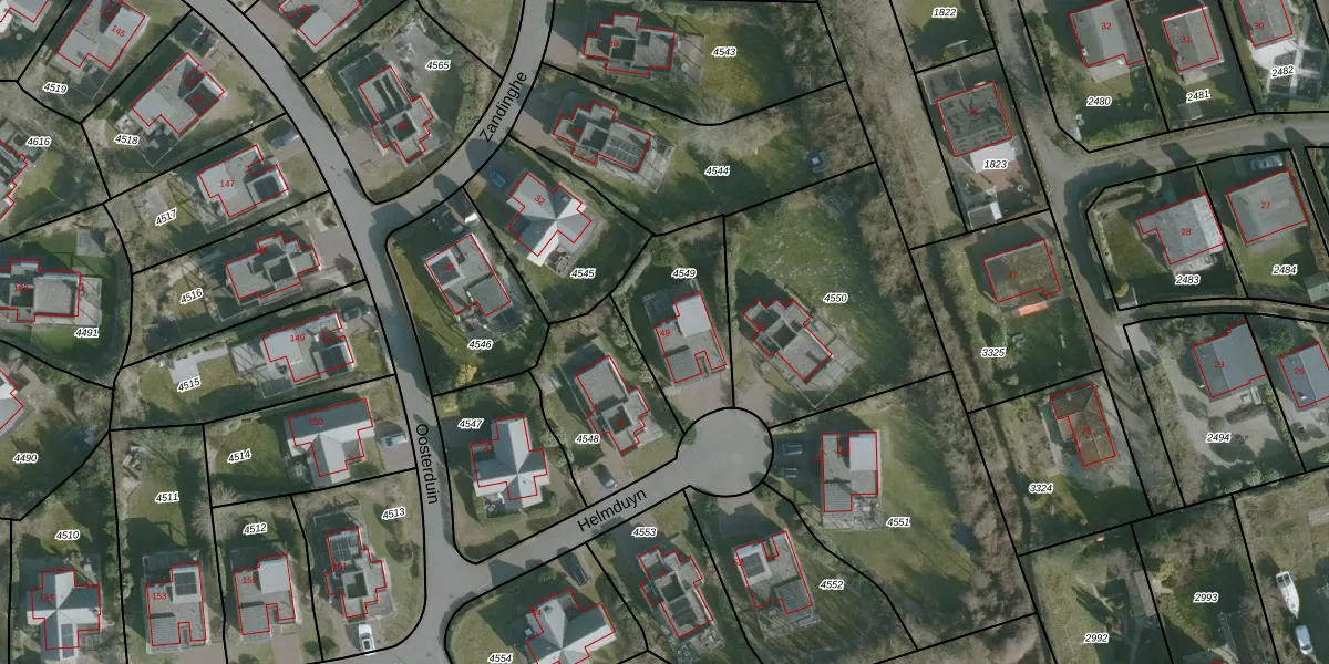 Helmduyn 49 is gelegen op kadastraal perceel ODP01B4549. Deze kadastrale aanduiding is uniek en wordt gebruikt door het Kadaster om eigendomsrechten en andere zakelijke rechten vast te leggen. Het perceel maakt onderdeel uit van de kadastrale gemeente Ouddorp.