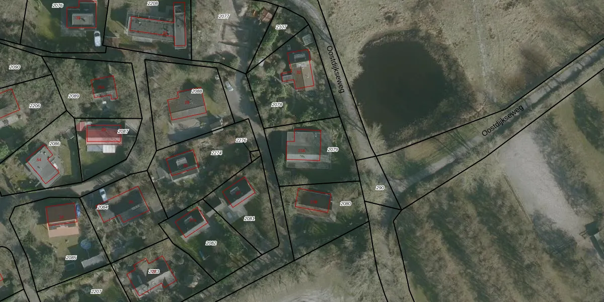 Jonkerstee 23-A is gelegen op kadastraal perceel ODP01D2079. Deze kadastrale aanduiding is uniek en wordt gebruikt door het Kadaster om eigendomsrechten en andere zakelijke rechten vast te leggen. Het perceel maakt onderdeel uit van de kadastrale gemeente Ouddorp.