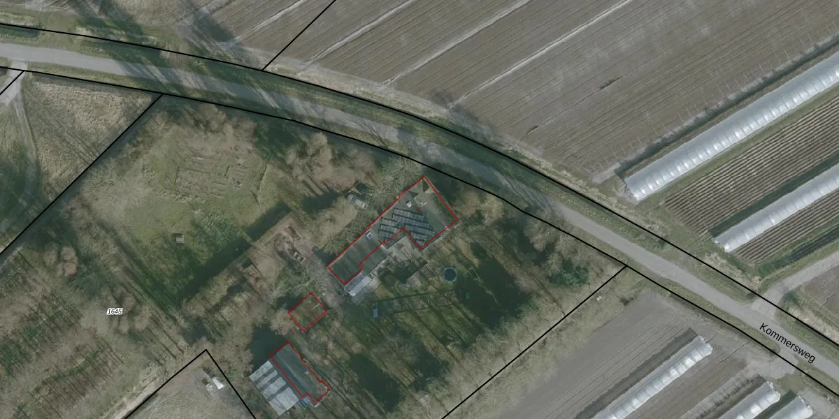 Kommersweg 2 is gelegen op kadastraal perceel ODP01H1645. Deze kadastrale aanduiding is uniek en wordt gebruikt door het Kadaster om eigendomsrechten en andere zakelijke rechten vast te leggen. Het perceel maakt onderdeel uit van de kadastrale gemeente Ouddorp.