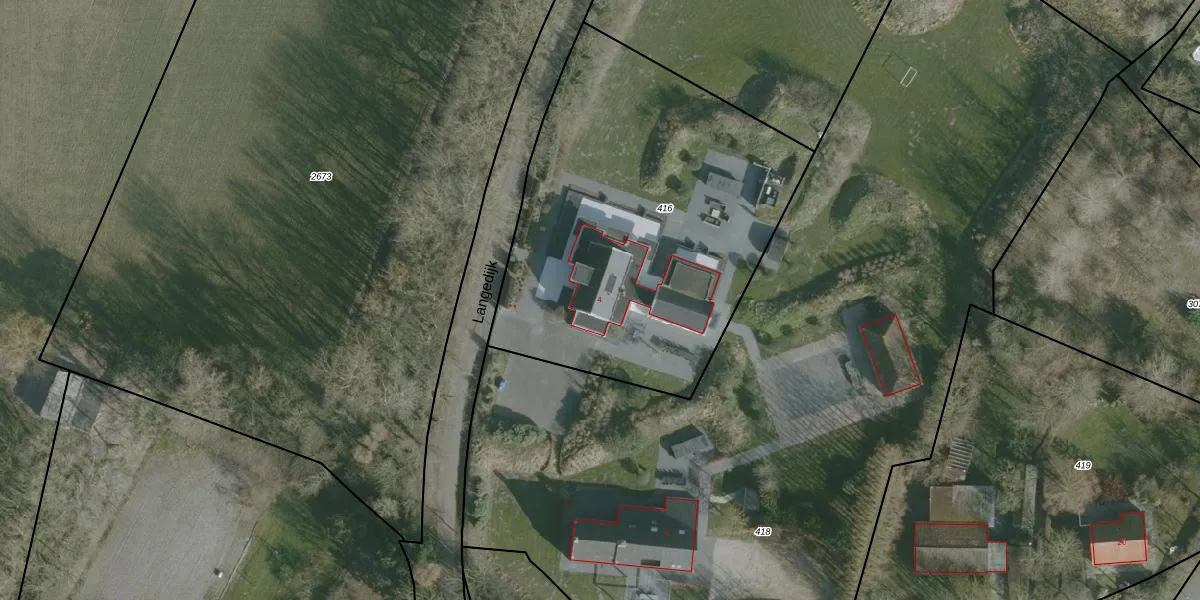 Langedijk 4 is gelegen op kadastraal perceel ODP01H416. Deze kadastrale aanduiding is uniek en wordt gebruikt door het Kadaster om eigendomsrechten en andere zakelijke rechten vast te leggen. Het perceel maakt onderdeel uit van de kadastrale gemeente Ouddorp.