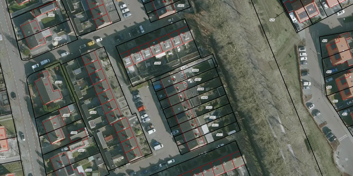 Het adres ligt op het perceel ODP01-D-1607, dat zich in de kadastrale gemeente Ouddorp bevindt. De gemiddelde perceelgrootte in Ouddorp is 3123,68 m². Dit perceel is kleiner: de perceeloppervlakte bedraagt 200 m². Het kleinste perceel in de kadastrale gemeente is 0 m² groot. De grootste perceeloppervlakte is 1,10 km². Er zijn geen andere adressen aanwezig op het perceel. De huidige grenzen van het perceel zijn digitaal in de Basisregistratie Kadaster (BRK) geregistreerd op 14-01-2002.