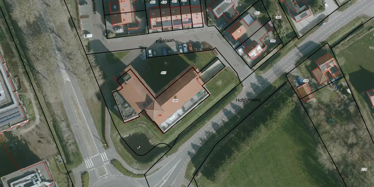 Parklaan 1 is gelegen op kadastraal perceel ODP01G364. Deze kadastrale aanduiding is uniek en wordt gebruikt door het Kadaster om eigendomsrechten en andere zakelijke rechten vast te leggen. Het perceel maakt onderdeel uit van de kadastrale gemeente Ouddorp.