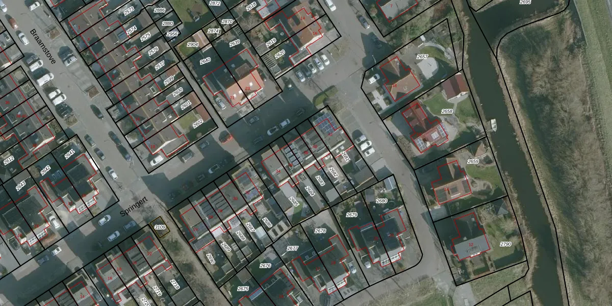 Het perceel waarop Springert 38 staat heeft een oppervlakte van 143 m². Dit is een middelgroot perceel. De perceeloppervlakte wordt geregistreerd door het Kadaster. Gedetailleerde informatie over de maten van dit perceel kunt u vinden in het rapport Kadastrale kaart met maatvoering van Springert 38.