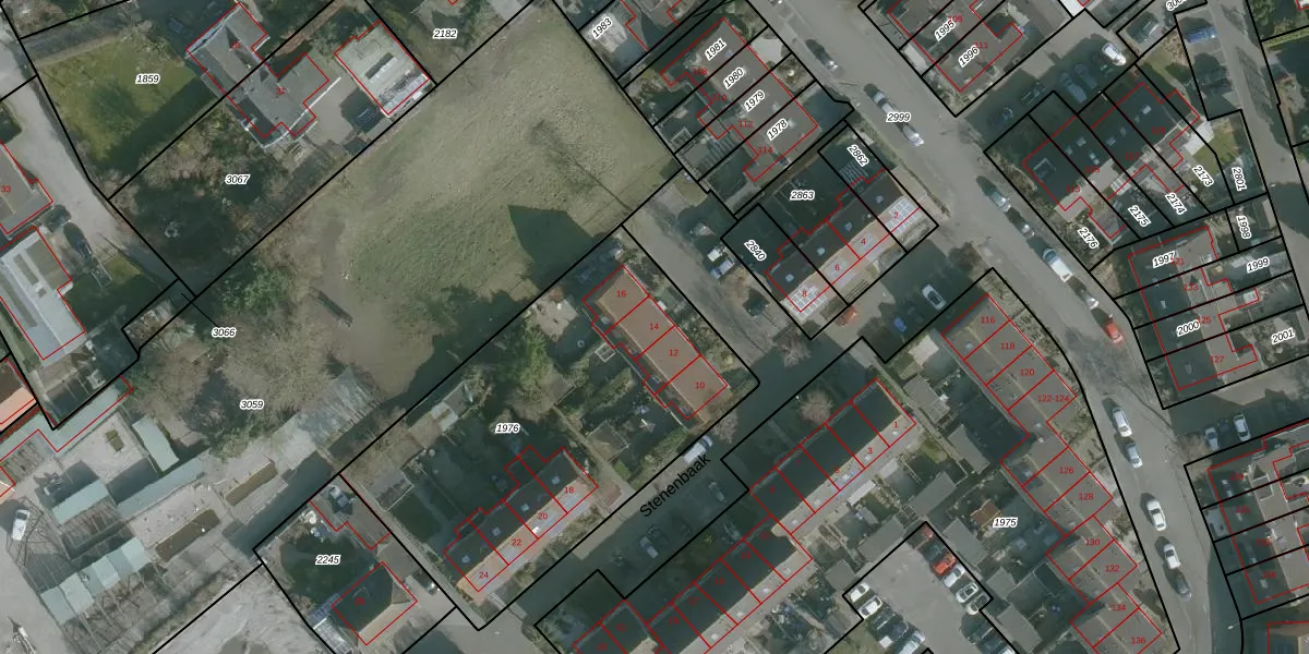 Stenenbaak 14 is gelegen op kadastraal perceel ODP01D1976. Deze kadastrale aanduiding is uniek en wordt gebruikt door het Kadaster om eigendomsrechten en andere zakelijke rechten vast te leggen. Het perceel maakt onderdeel uit van de kadastrale gemeente Ouddorp.