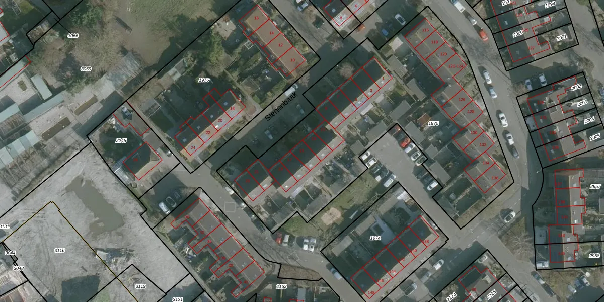 Het perceel waarop Stenenbaak 15 staat heeft een oppervlakte van 3400 m². Dit is een zeer groot perceel. De perceeloppervlakte wordt geregistreerd door het Kadaster. Gedetailleerde informatie over de maten van dit perceel kunt u vinden in het rapport Kadastrale kaart met maatvoering van Stenenbaak 15.