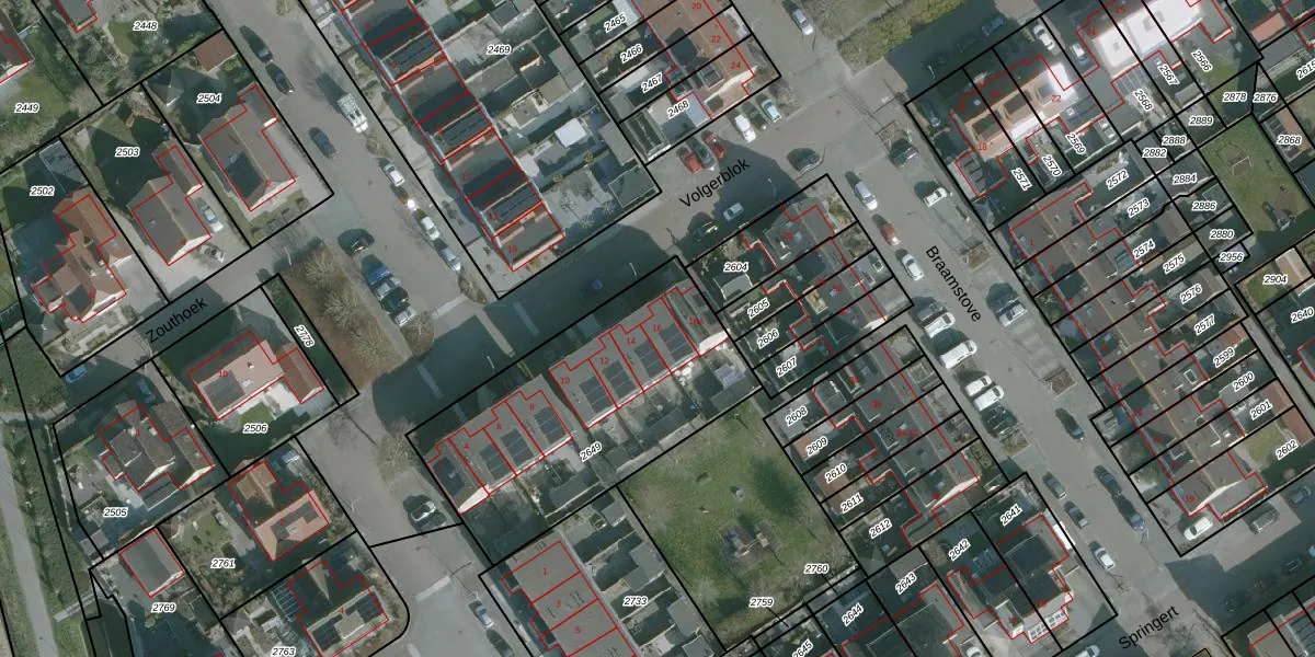 Volgerblok 16 is gelegen op kadastraal perceel ODP01D2649. Deze kadastrale aanduiding is uniek en wordt gebruikt door het Kadaster om eigendomsrechten en andere zakelijke rechten vast te leggen. Het perceel maakt onderdeel uit van de kadastrale gemeente Ouddorp.