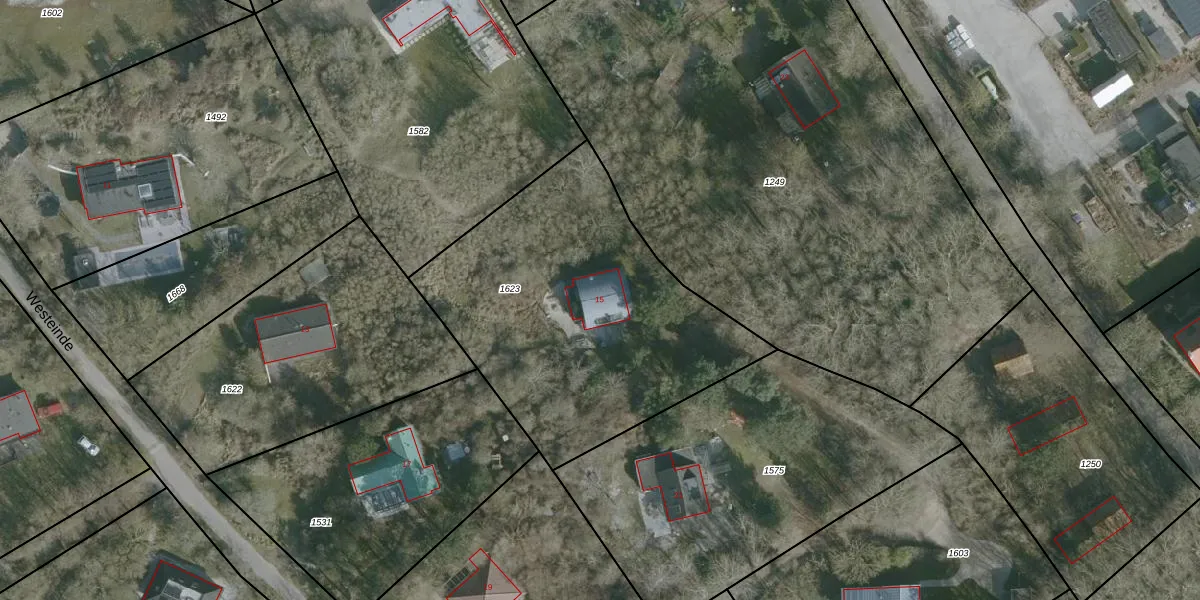 Westeinde 15 is gelegen op kadastraal perceel ODP01A1623. Deze kadastrale aanduiding is uniek en wordt gebruikt door het Kadaster om eigendomsrechten en andere zakelijke rechten vast te leggen. Het perceel maakt onderdeel uit van de kadastrale gemeente Ouddorp.