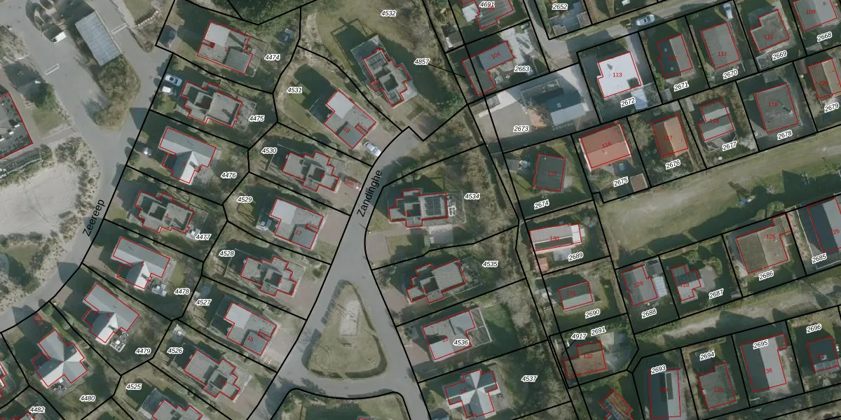 Zandinghe 21 is gelegen op kadastraal perceel ODP01B4534. Deze kadastrale aanduiding is uniek en wordt gebruikt door het Kadaster om eigendomsrechten en andere zakelijke rechten vast te leggen. Het perceel maakt onderdeel uit van de kadastrale gemeente Ouddorp.