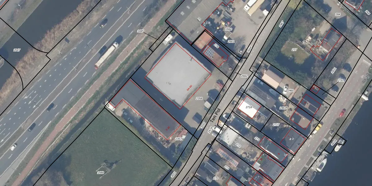 Het perceel waarop Ten Pol 6-B staat heeft een oppervlakte van 1535 m². Dit is een zeer groot perceel. De perceeloppervlakte wordt geregistreerd door het Kadaster. Gedetailleerde informatie over de maten van dit perceel kunt u vinden in het rapport Kadastrale kaart met maatvoering van Ten Pol 6-B.