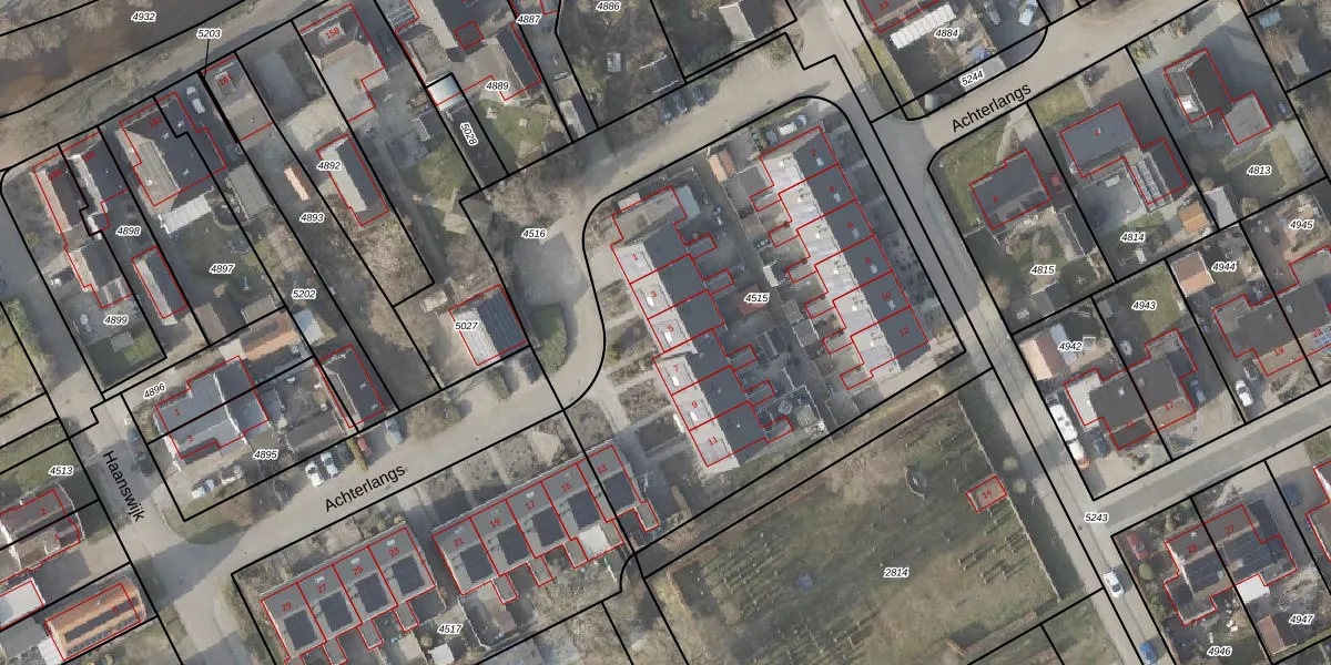 Het perceel waarop Achterlangs 5 staat heeft een oppervlakte van 2447 m². Dit is een zeer groot perceel. De perceeloppervlakte wordt geregistreerd door het Kadaster. Gedetailleerde informatie over de maten van dit perceel kunt u vinden in het rapport Kadastrale kaart met maatvoering van Achterlangs 5.