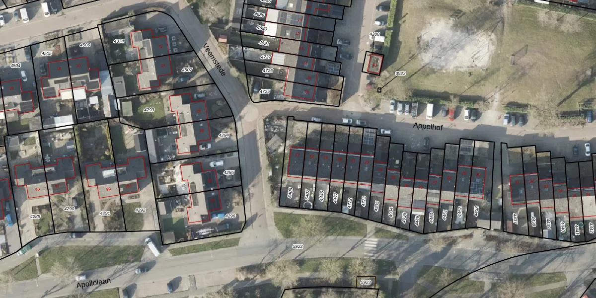 Het perceel waarop Appelhof 17 staat heeft een oppervlakte van 200 m². Dit is een middelgroot perceel. De perceeloppervlakte wordt geregistreerd door het Kadaster. Gedetailleerde informatie over de maten van dit perceel kunt u vinden in het rapport Kadastrale kaart met maatvoering van Appelhof 17.